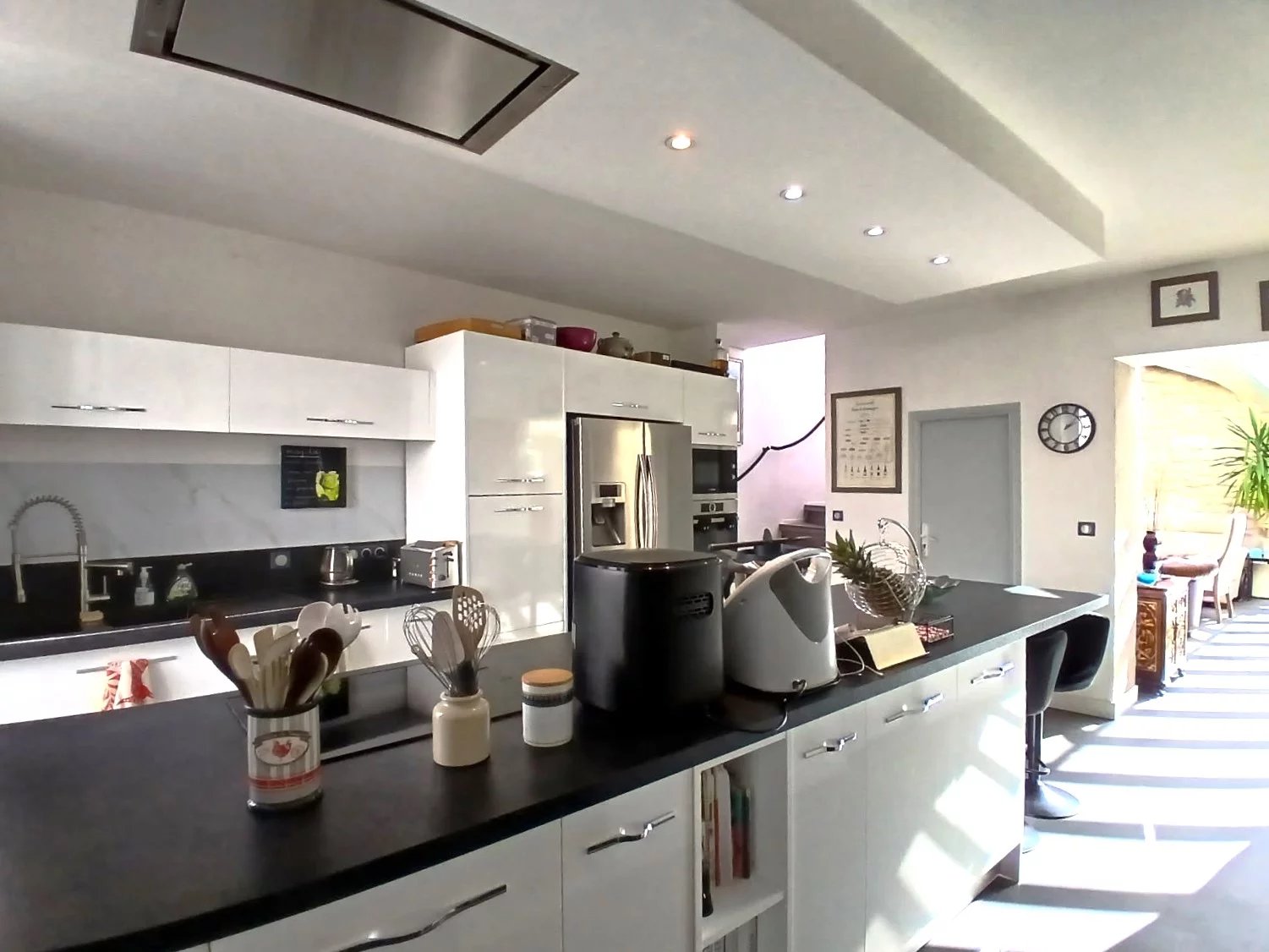 Un espace de vie baigné de lumière avec son toit verriere qui offre 56m² distibué en une cuisine équipée digne d'un chef ouverte sur un salon/salle à manger donnant accès à la terrasse.